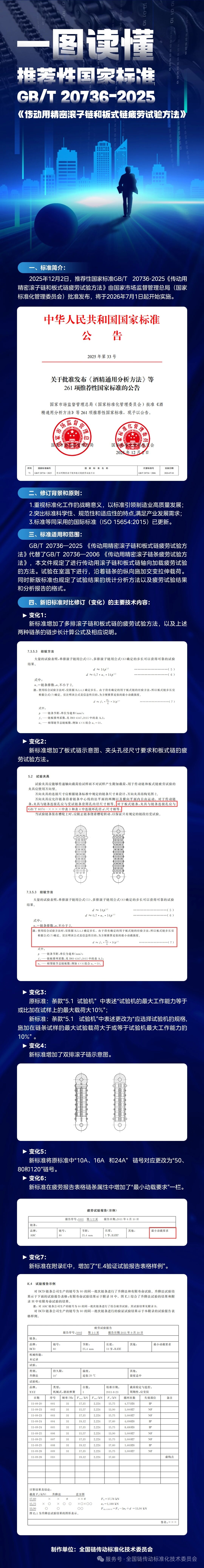 一图读懂推荐性国家标准GB/T20736-2025《传动用精密滚子链和板式链疲劳试验方法》